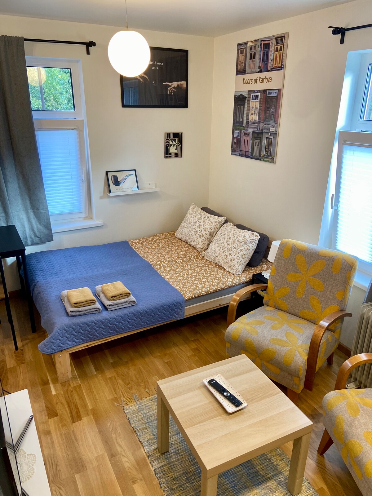 El apartamento se encuentra en la zona donde están las casas de madera del siglo XIX-XX, llamada Karlova. Muy cerca hay bares y pequeñas cafeterías con un ambiente agradable. Tienda de comestibles (Tähe Rimi mini) a 120 metros. El parque Karlova está cerca. A 15 minutos a pie del centro de la ciudad.
