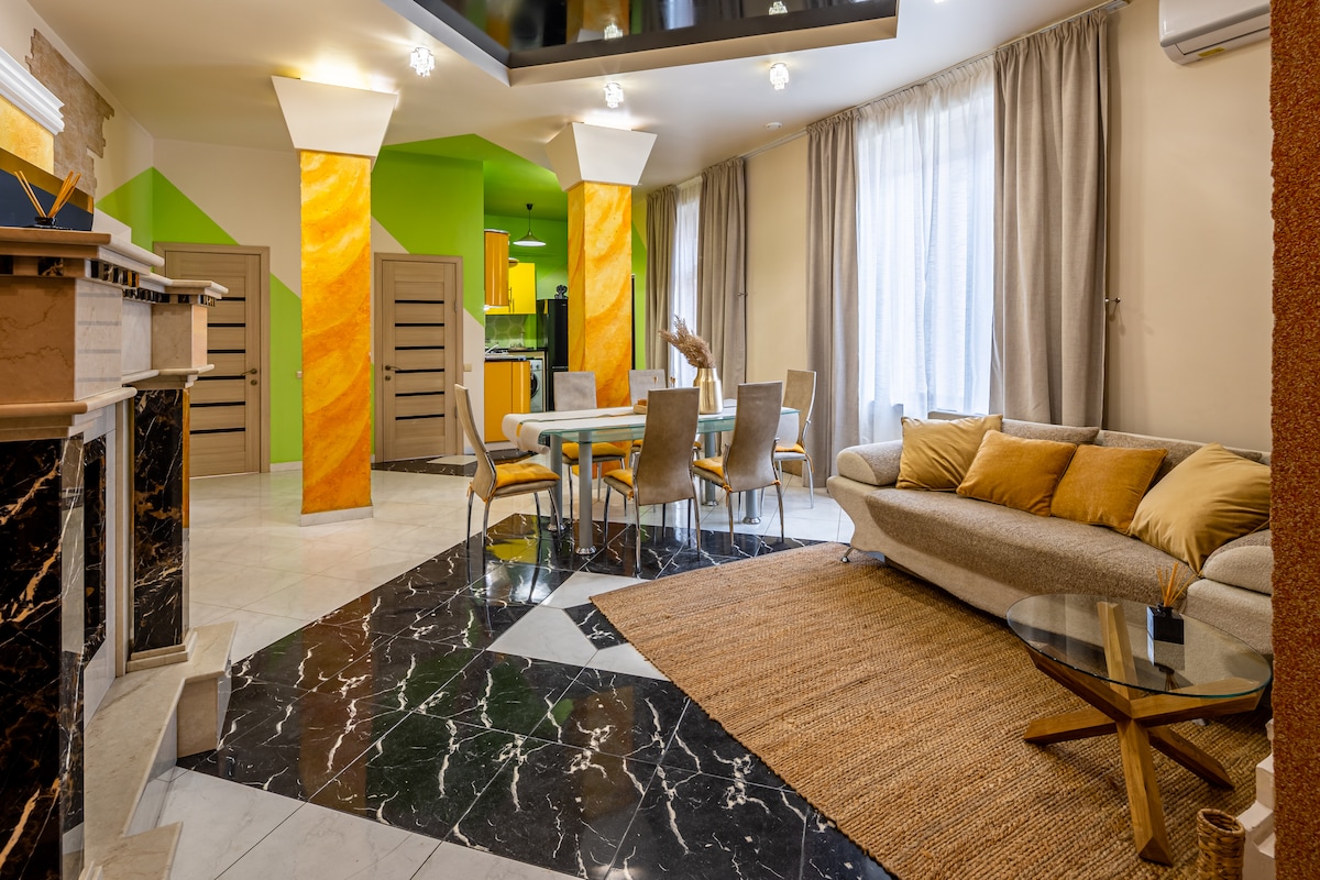 Un gran apartamento espacioso de 77 metros cuadrados con chimenea y balcón privado en un estilo moderno para una pareja o una persona. La cocina está equipada con todos los electrodomésticos necesarios, calefacción por suelo radiante, aire acondicionado y TV grande. Cerca del parque Stryj, el consulado polaco, el mercado y las tiendas. Cuarto piso, sin ascensor.