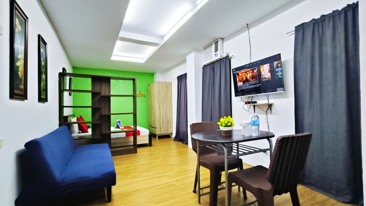 Disfruta de una estancia de lujo asequible. Aquí en Joseph's Pad Luxury Staycation, damos prioridad a la comodidad y tranquilidad de nuestros huéspedes. Estamos estratégicamente ubicados en el corazón de QC, Cubao, Araneta. A solo unos minutos de SM Megamall, SM North EDSA, Araneta Colliseum, SM Cubao, etc. El espacio incluye: - Colchón alto de cama tamaño queen - Sofá cama - Televisor inteligente Samsung de 55 pulgadas. - Ducha fría y caliente. - Refrigerador - Acceso wifi. - Acceso a la piscina. - Artículos de aseo (champús, pañuelos, toallas, etc.).