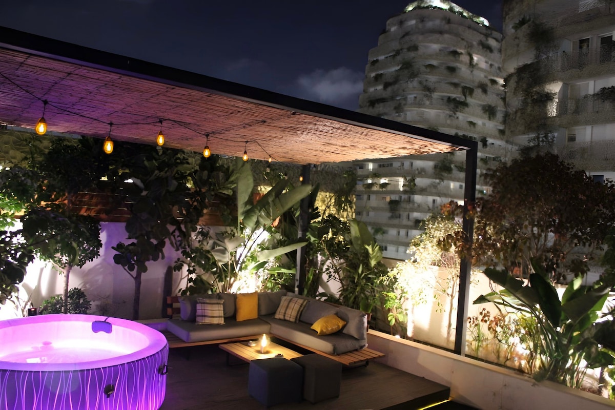 Estudio moderno con terraza privada amueblada en una residencia premium de Casablanca con ascensor y recepción las 24 horas, los 7 días de la semana. Luminoso living, TV inteligente (Netflix) y wifi de alta velocidad. Cama queen con sábanas planchadas. Cocina con anafe, horno, campana y heladera. Baño con ducha a ras de suelo. Check-in 100% autónomo, tarjeta llave en la recepción 24/7. Gimnasio en el lugar y lavandería compartida. Estacionamiento subterráneo privado con acceso al ascensor. Capacidad para 4 personas (óptimo 3). Tranvía a 1 minuto de distancia.
