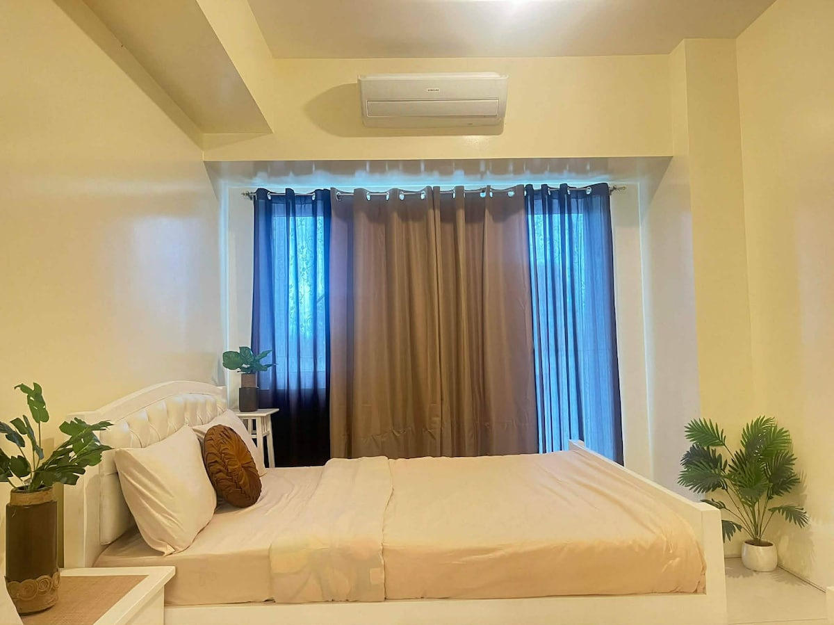 The Crest en Wind Residences Tagaytay (Vista al lago Taal/autopista) Características: Smart TV de 55 pulgadas (con cuenta dedicada de Netflix) Wifi (30-50 Mbps) Microondas Mini-nevera (puerta doble) Hervidor eléctrico Aire acondicionado Samsung de tipo dividido Perchero y perchas móviles. Baño con calentador de agua y bidé. Jabón personal y cepillo de dientes gratuitos. Uso de toallas (solo 2 piezas por reserva) Distribución de las camas: Cama doble (para 2 personas). Sofá cama grande (para 2 personas)