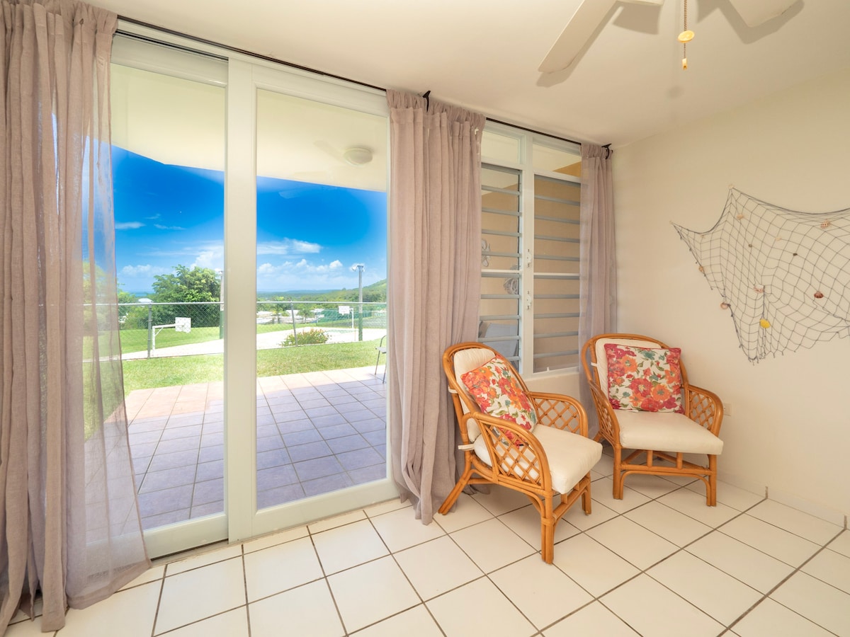 El alojamiento es un apartamento “Garden”, muy fresco, con vista panorámica en todas las áreas del mismo, desde cualquier espacio podrás disfrutar la vista del océano, montañas, isla Vieques, Culebra y otros cayos. Se encuentra a minutos conduciendo a playas reconocidas como “Seven Seas Beach”, también se encuentra cerca del Terminal del Ferry y aeropuerto de Ceiba. Cuenta con muchos restaurantes y barras cerca para todos los gustos. Excelente para vacaciones, compartir en familia y amistades.
