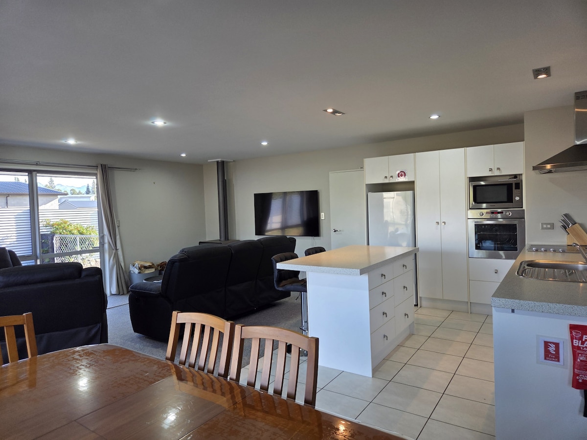 Nuestra casa de vacaciones de nueva construcción ha sido diseñada específicamente para que puedas disfrutar de las vistas épicas de las montañas y las increíbles estrellas del cielo nocturno. Terminado a un alto nivel y ubicado en las afueras de Twizel, Tussock Fields, ofrece todo lo que puedas desear para tu estancia en el Mackenzie, espacio para familiares y amigos, total comodidad moderna, estacionamiento fuera de la calle para todos tus vehículos y wifi gratuito. Ten en cuenta que la propiedad NO está completamente vallada, el baño al aire libre NO está disponible de mayo a septiembre.
