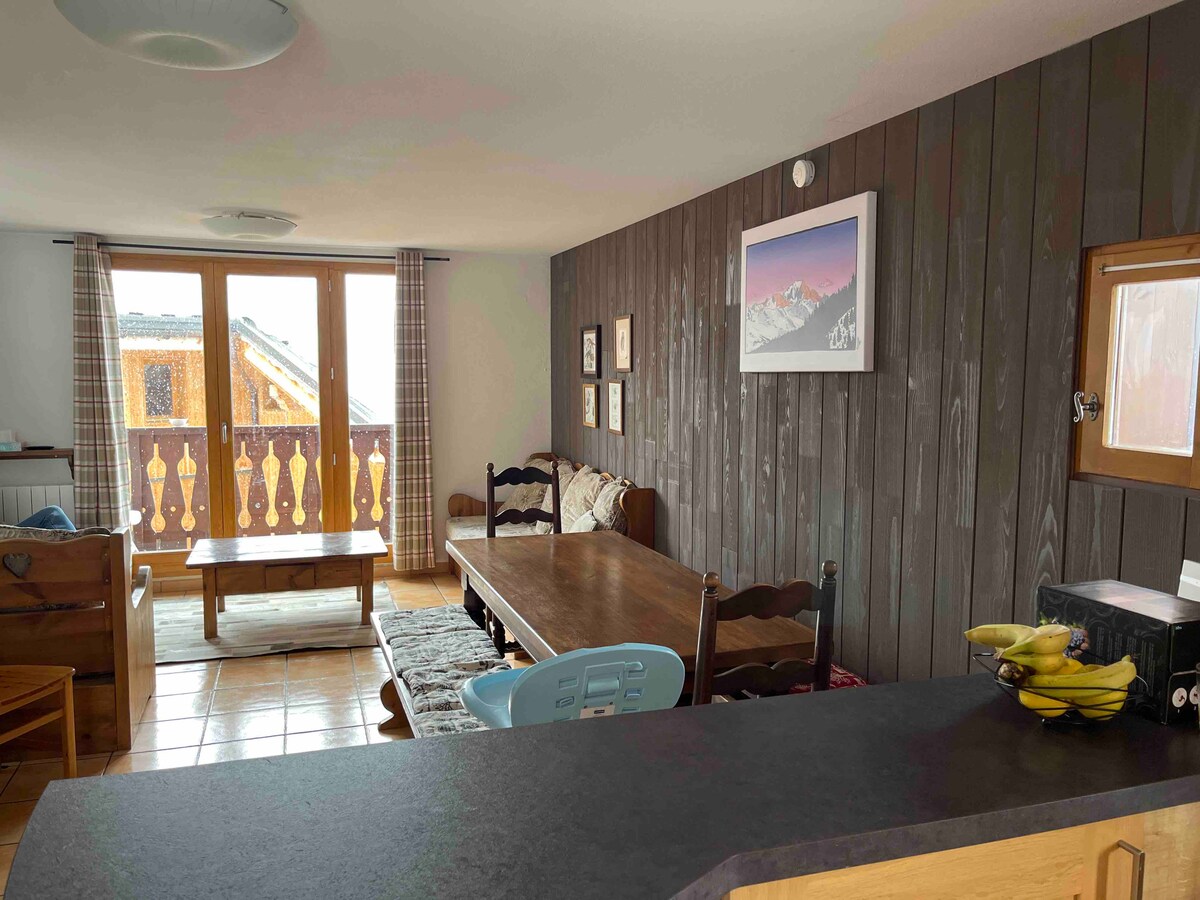Encantador chalet idealmente situado a 2050 m, con los esquís puestos (el chalet se encuentra a lo largo de una pista azul), con vistas a los chalets y a las montañas circundantes. Previsto para 10 personas (+1 cuna) El chalé está cerca de las tiendas. *Atención: Se accede al chalet por unos sesenta escalones*. Información importante del alquiler: ¡Alquiler de domingo a domingo para esquiar tranquilo el sábado y evitar los atascos! Wifi, sábanas y limpieza al final de la estancia incluidos