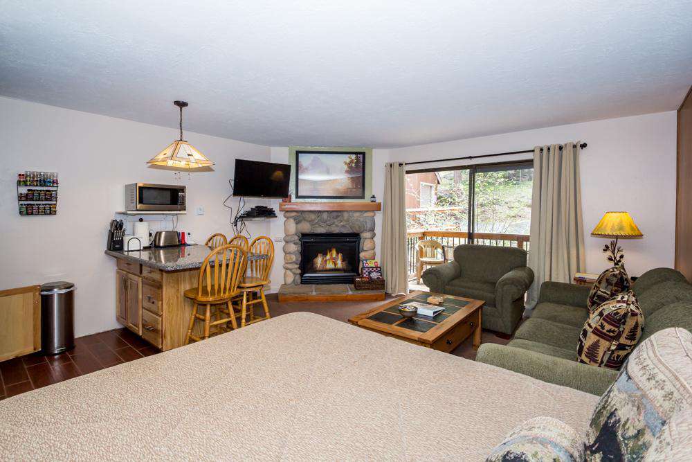 Este encantador apartamento tipo estudio en Shaver Lake ofrece un acogedor refugio en las montañas, perfecto para una escapada tranquila. El diseño de concepto abierto combina sala de estar, comedor y dormitorio, creando un ambiente espacioso pero íntimo. Una cómoda cama de tamaño completo se complementa con sábanas suaves y una decoración rústica que captura el ambiente de montaña. Con fácil acceso a senderismo, esquí y el hermoso lago Shaver, este apartamento tipo estudio es una base ideal para tus aventuras en la montaña.