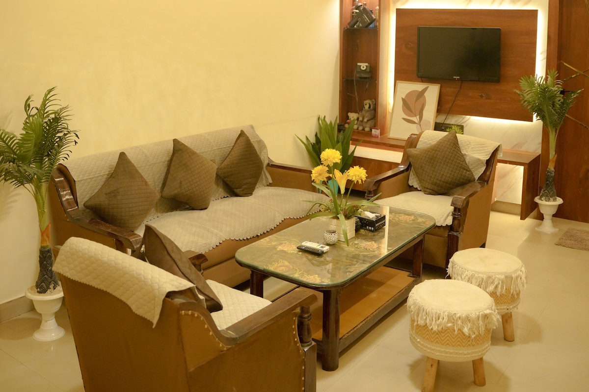 Welcome to La Casa Viva — a boutique stay with vibrant Mexican-inspired design, set in the heart of Gomti Nagar. Perfect for families, friends, or couples, this 1st-floor Airbnb in an independent home (with the ground floor vacant) offers a private home cinema + bathtub + an extra-long living room with plush seating + a spacious balcony with lively plants. Comfortably sleeps 3. True to its name, La Casa Viva — ‘The Lively Home’ — is crafted to make your stay bright, joyful, and memorable