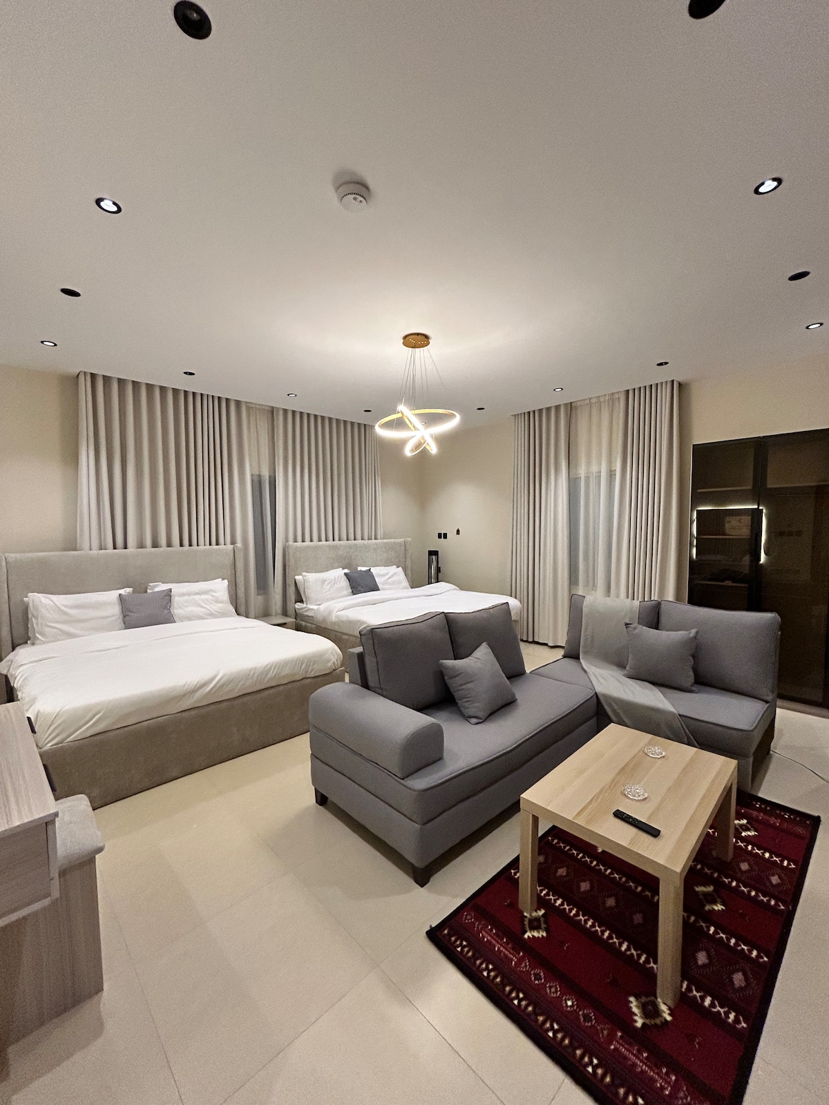 Un estudio moderno, en el corazón de Medina, que puede alojar a sus visitantes, que consta de una cama real, un refrescante jacuzzi de agua caliente y fría, inodoros integrados, equipados con todas las necesidades de cuidado personal, un televisor inteligente con múltiples canales y wifi. No solo eso, como te hemos acostumbrado, estamos aquí para celebrar cada momento contigo a través de la hospitalidad gratuita y el servicio al cliente las 24 horas, los 7 días de la semana, para que tu estadía sea una experiencia inolvidable.