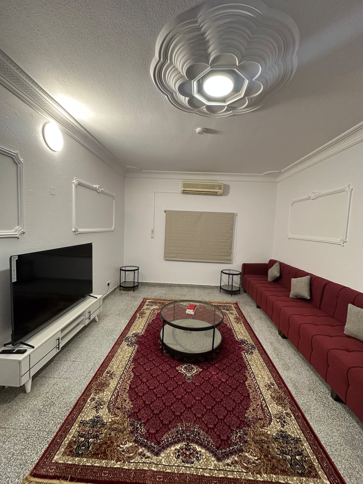 Te damos la bienvenida a Hemzah, un elegante apartamento de hotel con un auténtico carácter Asiri, diseñado para ofrecerte una experiencia de alojamiento única que combina el patrimonio y la comodidad moderna. Ubicado en una ubicación distintiva y cerca del campus, el apartamento ofrece todo lo necesario para una estancia tranquila y cómoda, ya sea que estés en un viaje de negocios, una visita religiosa o una recreación. 🛋 Detalles del anuncio: Un dormitorio espacioso con una decoración inspirada en el arte y una cama cómoda que ofrece un sueño tranquilo. Pantalla inteligente de 75 pulgadas Baño de lujo con todos los suministros