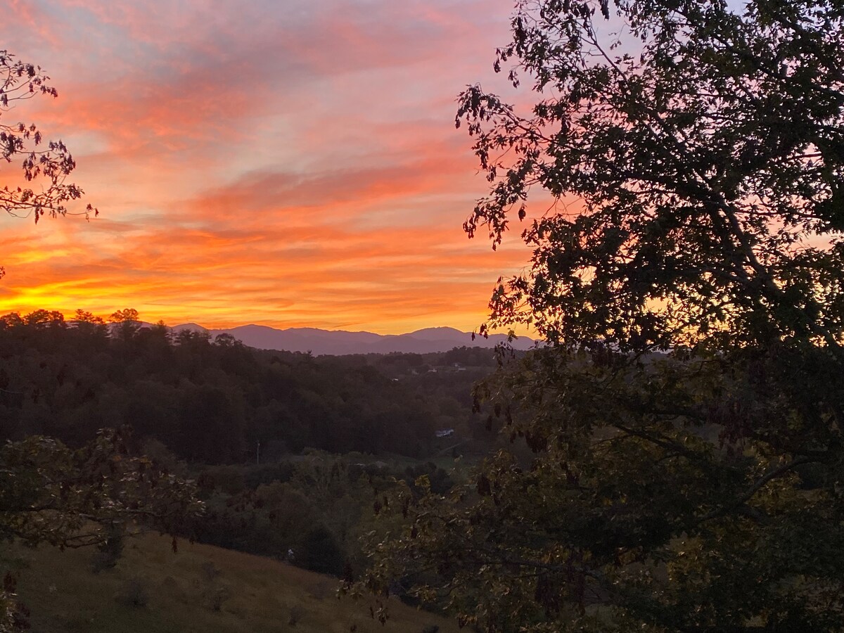 Si eres un vecino del oeste de Carolina del Norte, estamos aquí para ti. Nuestra granja de ocho acres es un hermoso y tranquilo lugar para relajarse. Estamos creando jardines nativos para dar la bienvenida a las aves migratorias y a los huéspedes. Siéntete como en casa en una hermosa cabaña personalizada, relájate en nuestra sauna de leña con inmersión en frío alimentado por manantiales y diviértete con nuestro anfitrión de animales amistosos. El senderismo y el comedor de clase mundial están a poca distancia en auto, pero es posible que te lleve la magia de la granja que no quieras irte.