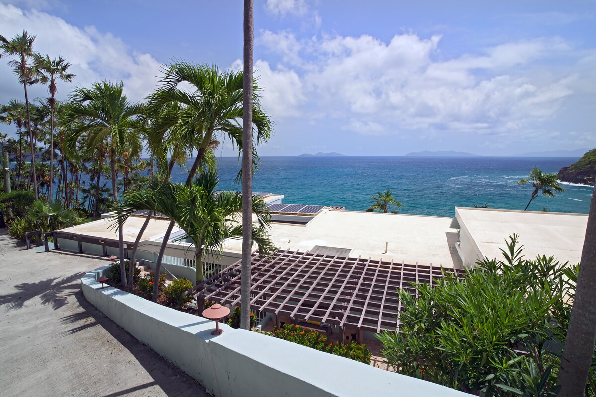 ¡Duerme con el sonido de las olas del mar en tu paraíso privado con vistas panorámicas! Esta casa independiente cuenta con 3 camas tamaño king nuevas, dormitorios con aire acondicionado, una cocina de chef con cocina a gas y wifi de alta velocidad para trabajar a distancia, y un generador de casa completa. ¡Los espacios llenos de energía se abren a impresionantes vistas que se extienden hasta St. John! SUV opcional de 7 asientos para aventuras inolvidables en la isla. Se admiten niños y mascotas, perfecto para familias. Estacionamiento fácil y ubicación tranquila y aislada. ¡Una casa súper céntrica, con un valor increíble!