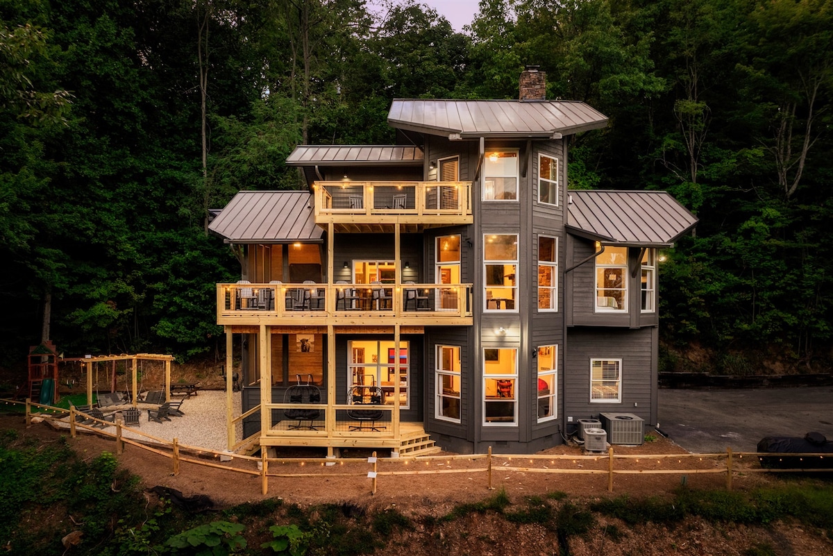 Nuestro chalet es una hermosa casa de 3 pisos iluminada naturalmente con un plano de planta abierto y 2 dormitorios principales. Tiene una hermosa vista a la montaña que se puede disfrutar desde la terraza principal o el balcón de la suite principal. Estamos ubicados en un lugar maravilloso donde se puede disfrutar de Blue Ridge Parkway, senderos naturales, atracciones de la ciudad, natación fluvial y esquí en poco tiempo o distancia de viaje, lo cual es ideal para las montañas. Disponemos de Wifi y TV inteligente para servicios de streaming. A 16 millas de Cataloochee Ski.