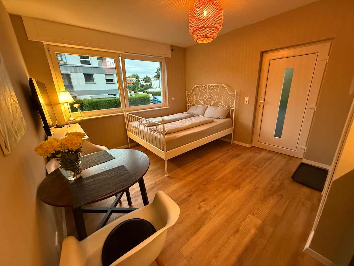 Luminoso apartamento de 1 habitación como nuevo (¡no fumadores!) da la bienvenida a sus huéspedes con mucha comodidad. La habitación principal tiene una sala de estar, un comedor, un espacio de trabajo y una cama de 140 cm de ancho. Una pequeña cocina totalmente equipada con horno y lavavajillas te invita a cocinar. El baño, al igual que todo el apartamento, es completamente nuevo y moderno. El aparcamiento (con Wallbox de 22 kW) en frente de la casa es sencillo y, gracias al acceso a nivel del suelo, todo el apartamento es accesible.