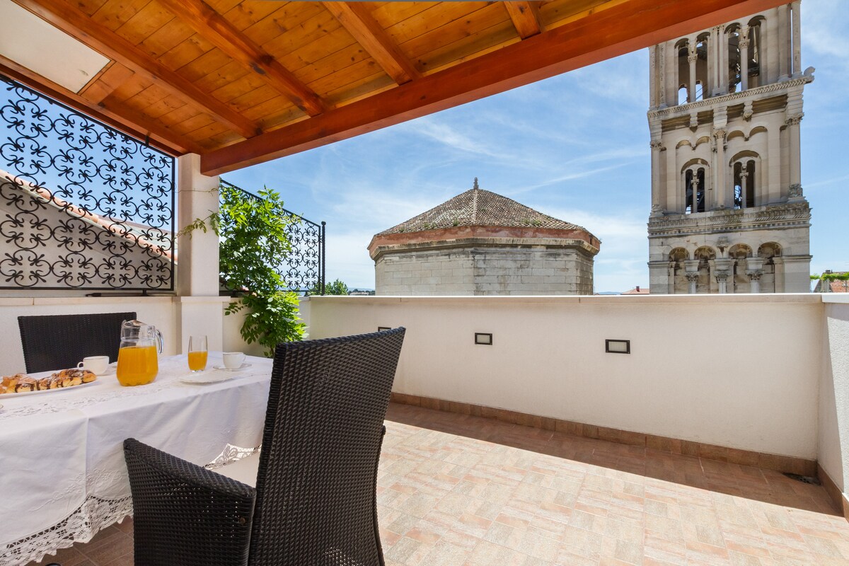 Loft NY cerca de Split: terraza con fabulosas vistas al mar