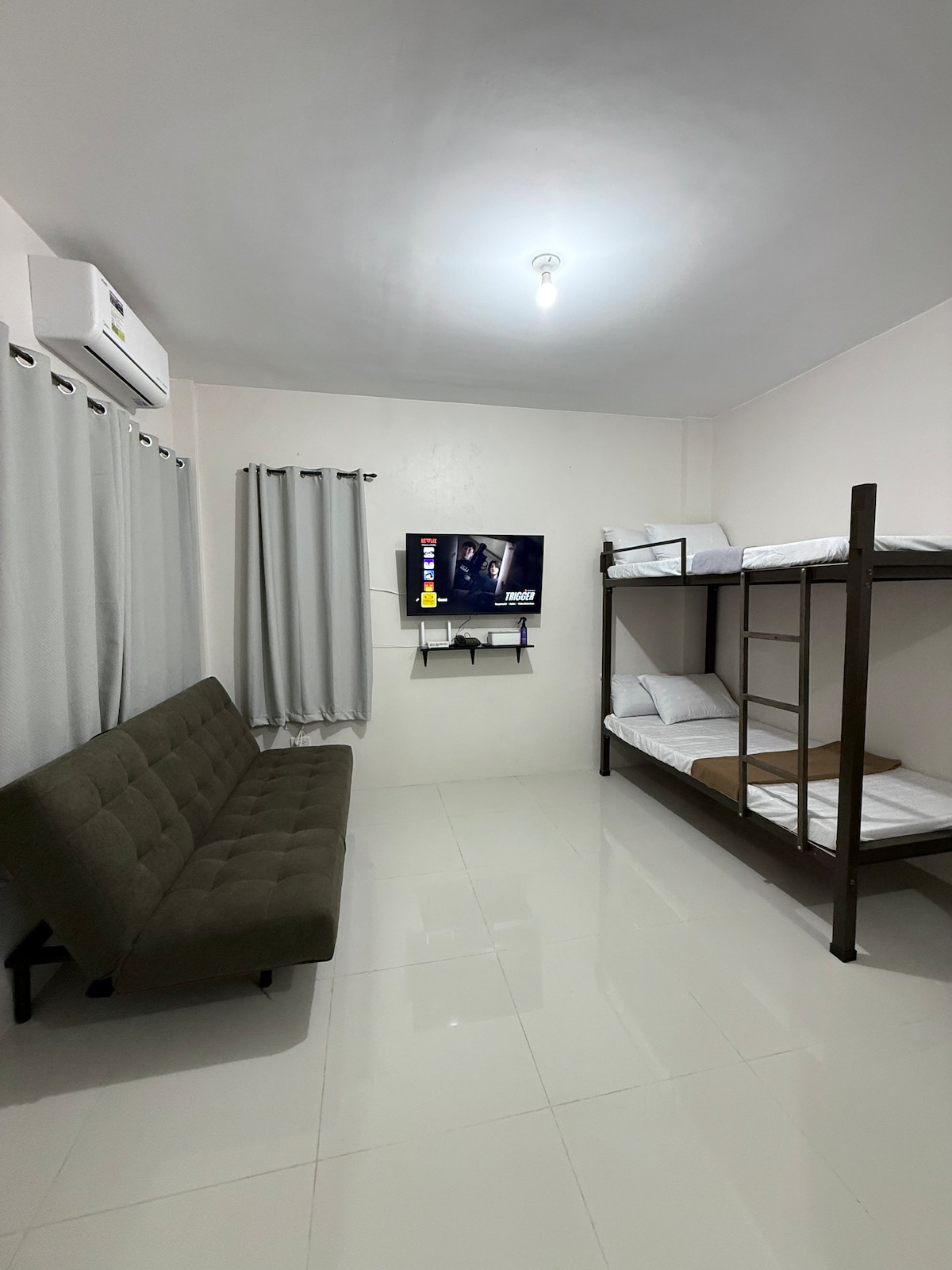 Quédate en la comodidad y conveniencia de este acogedor estudio a poca distancia de tiendas (Puregold, centro comercial), establecimientos clave (Capital Arena, oficinas gubernamentales, Capitolio provincial, Skypark, complejo). Disfruta de electricidad con energía solar sin apagones para cargas ligeras, Wi-Fi gratuito, Smart TV con Netflix y YouTube Premium, ducha caliente y fría, agua potable gratuita, cocina para recalentar comidas, estacionamiento amplio y uso gratuito del gimnasio en casa. Perfecto para estadías cortas y largas: ¡relajante, seguro y sin preocupaciones!