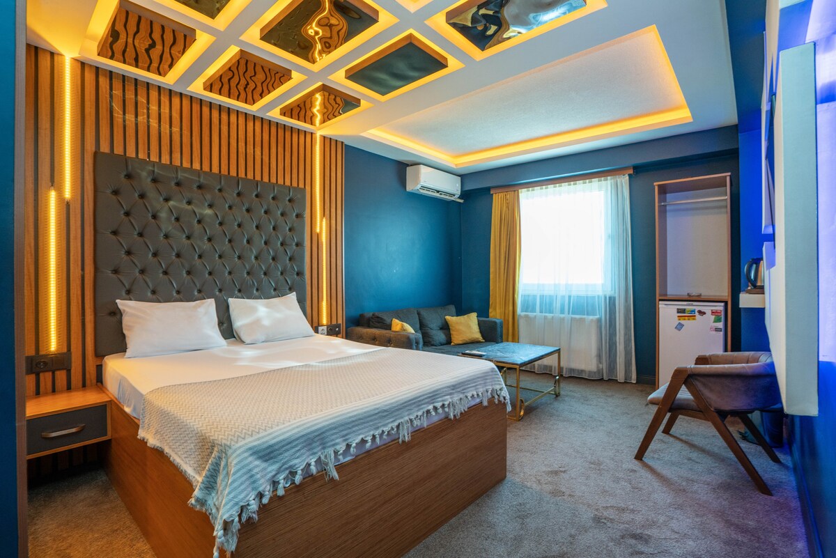 Zarif detaylarla tasarlanmış Premium Studio odamız, modern şıklığı üst düzey konforla buluşturur. Titizlikle yenilenmiş olan odamız, ferah ve sofistike dekorasyonu ile seçkin bir konaklama deneyimi sunar. Yüksek hızlı Wi-Fi, klima ve özenle seçilmiş konforlu yatağı sayesinde ev rahatlığını hissettirirken; sakin, huzurlu ve sıcak atmosferiyle misafirlerine ayrıcalıklı bir konaklama vadeder.