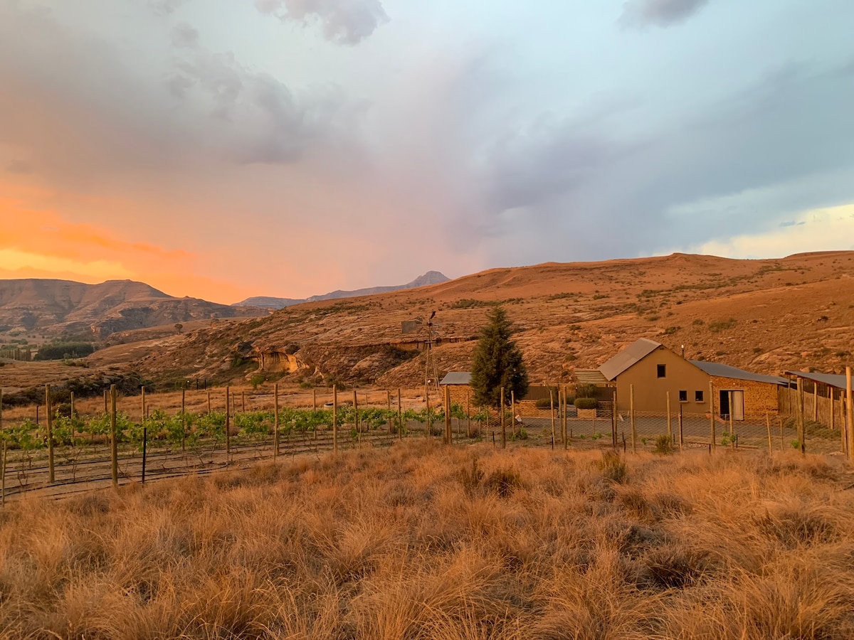 La casa de campo Clifton se encuentra en una granja en funcionamiento en la campiña de Clarens y ofrece a los huéspedes una estancia hermosa y tranquila. La granja es ideal para practicar senderismo, observación de aves y ciclismo de montaña, seguido de unas copas alrededor del fuego. La casa es adecuada para alojar a 4 personas en dos dormitorios privados, cada uno con su propio baño equipado con bañera y ducha. Todas las puertas dan a un gran patio con vistas a las montañas y a la granja. La casa cuenta con un braai al aire libre para uso de los huéspedes.