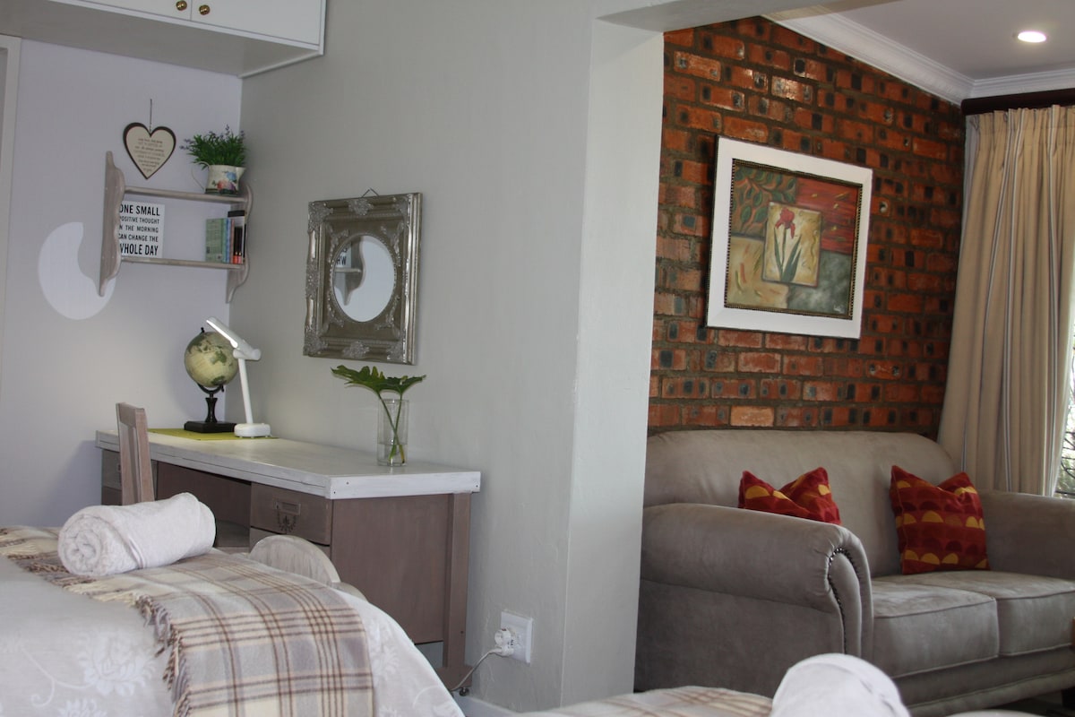 Una casa de campo tipo estudio luminosa y totalmente amueblada en un barrio tranquilo y exclusivo a medio camino entre Johannesburgo y Durban. Céntrica para explorar los tesoros del norte de Drakensberg y el Estado Libre del NE. Ideal para paradas nocturnas, como base de aventuras para los entusiastas del aire libre y para el académico que busca un espacio tranquilo para producir trabajos importantes. Acceso a un amplio jardín; tiendas a 1 km; muy cerca de la Reserva Natural de Platberg. Nos encanta nuestra casa y nuestra zona, y nos encantaría compartirlas contigo.