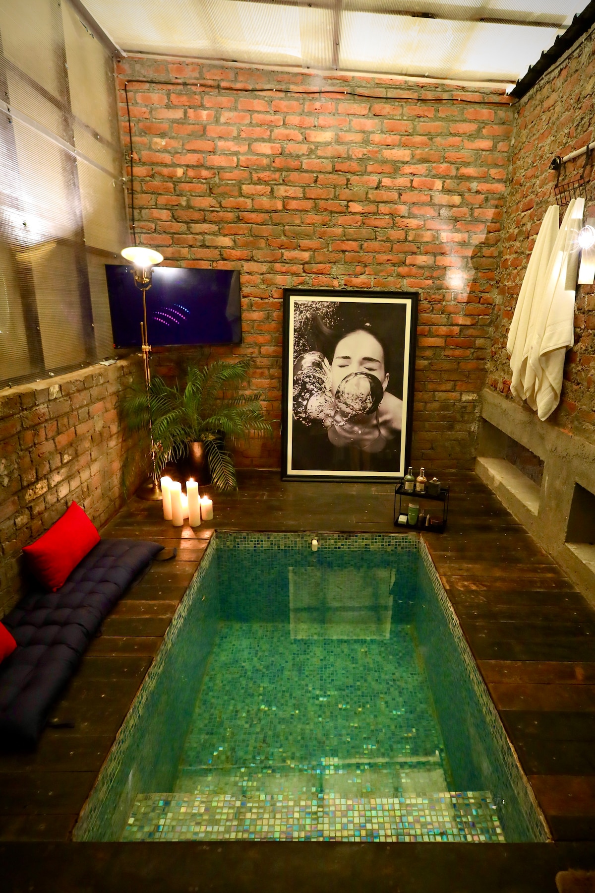 Un lugar de lujo con una gran piscina cubierta (de 10 pies por 24 pies de largo y 4 pies de profundidad) y áreas de estar decoradas con estilo. Un gran dormitorio principal con jacuzzi privado en el baño privado. Ubicado convenientemente en Posh South Delhi Neighborhood. Cerca de las principales atracciones turísticas como el Templo Lotus, Qutub Minar, Hauz Khas. Centros comerciales como, Select City Mall, GK, Shahpur jat. A 5 minutos de la estación de metro. insta - micassohomes A 30-40 minutos del aeropuerto en Uber, también accesible en metro.