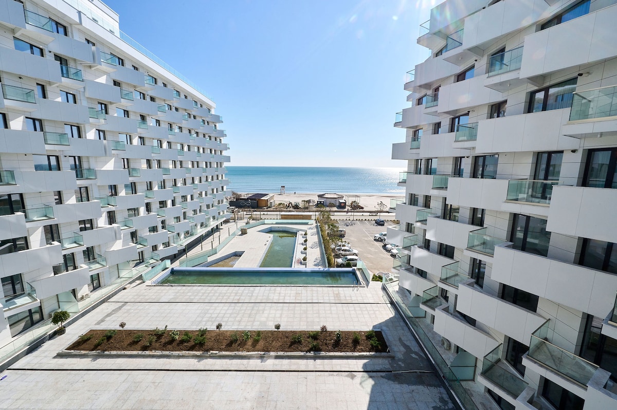 New Apartment with sea view and pool access is situated right next to the beach in Alezzi Beach Resort, in one of the best areas in Mamaia. You can sip your coffee in the balcony, watch the sunrise and feel the Black Sea breeze. The kitchen is fully equipped and you are welcome to cook. Nearby you can find the most diverse restaurants, coffee shops and clubs. Our guests will have also free access to the indoor and outdoor pools, fitness gym, SPA, playgrounds and pool for children.