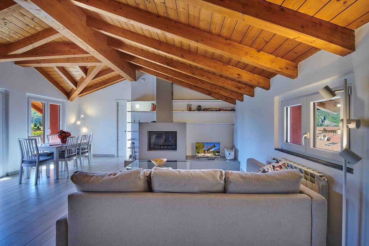 Penthouse ático con techo inclinado, espacio abierto, en un elegante complejo residencial, en una zona tranquila, a 10 minutos a pie del centro y a 20 minutos del lago y la estación. Una gran ventana permite el acceso a la gran terraza, con vistas al lago de Como y las montañas (Grigne), para trabajar de forma inteligente al aire libre o relajarse. Código de identificación nacional: IT097046C2AVJSQT4Z El impuesto turístico se paga en efectivo 2 euros por noche por persona, excepto por las exenciones (Municipio Mandello del Lario, Delib. C. n .º 150 de 2.10.2024)