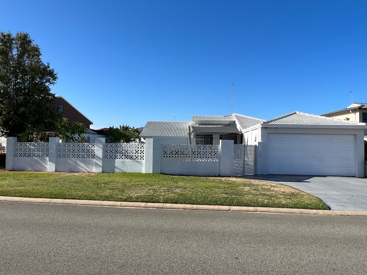 Retiro de golfistas o escapada a la playa: ¡puedes disfrutar de ambos! Esta casa de 3 dormitorios y 2 baños tiene capacidad para 6 personas y es perfecta para tus vacaciones en Mandurah. Aire acondicionado de ciclo inverso en el comedor/sala de estar y dormitorios. Dos dormitorios tienen camas tamaño queen, ambas con armarios empotrados y ventiladores de techo, mientras que el tercer dormitorio tiene una cama nido de tamaño individual, además de un escritorio. Hay una cuna portátil con ropa de cama que se puede montar, además de una silla alta y un cochecito si es necesario. Se proporcionan sábanas de cama de calidad, almohadas, edredones, toallas de baño y playa.