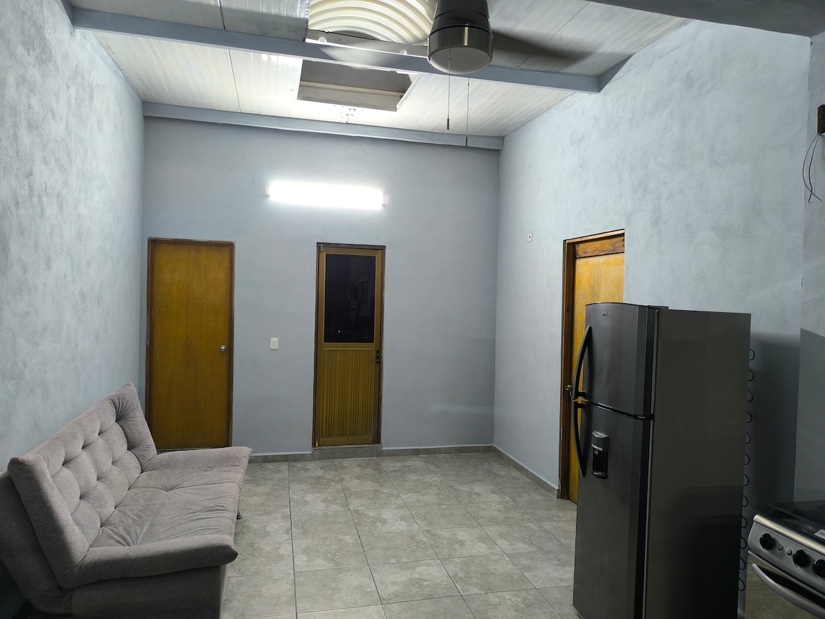 *FACTURAMOS* (La facturación se maneja más IVA, debido a nuestros precios bajos) Departamento completamente climatizado tipo LOFT a 100 m del monumento pez vela en manzanillo, centro; a 5 min de playa san pedrito y a 15 min de la zona hotelera. Capacidad de hasta 5 personas *Completamente climatizado A/C -1 cama king size premium -1 sofá cama matrimonial -1 colchón inflable matrimonial *Sala de estar *Cocina *Barra desayunadora *Frigobar *Baño completo *Smart tv con cable e internet *Wifi