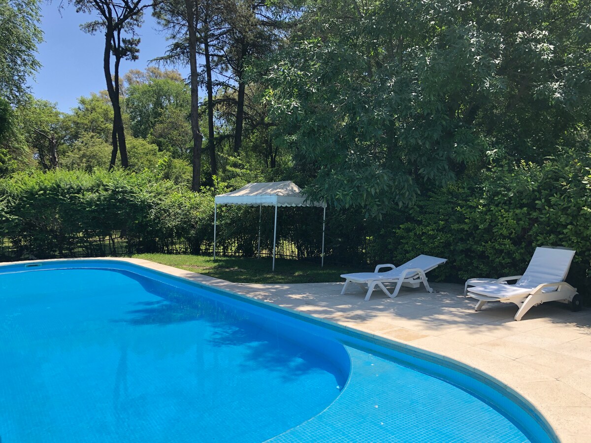 Descubre esta casita encantadora, con sector fogonero y jardín amplio. Ideal para escapar del ruido urbano, relajarte en el jacuzzi/piscina del deck de madera. Perfecta para trabajar o descansar en un entorno tranquilo, dentro de un barrio cerrado, cerca del centro de la ciudad -No se permiten Mascotas -No se permiten Fiestas o Reuniones sociales de ningún tipo. -No apta fumadores -No apta bebés/niños de 0-12 años (SIN EXCEPCIÓNES por favor no consultar)