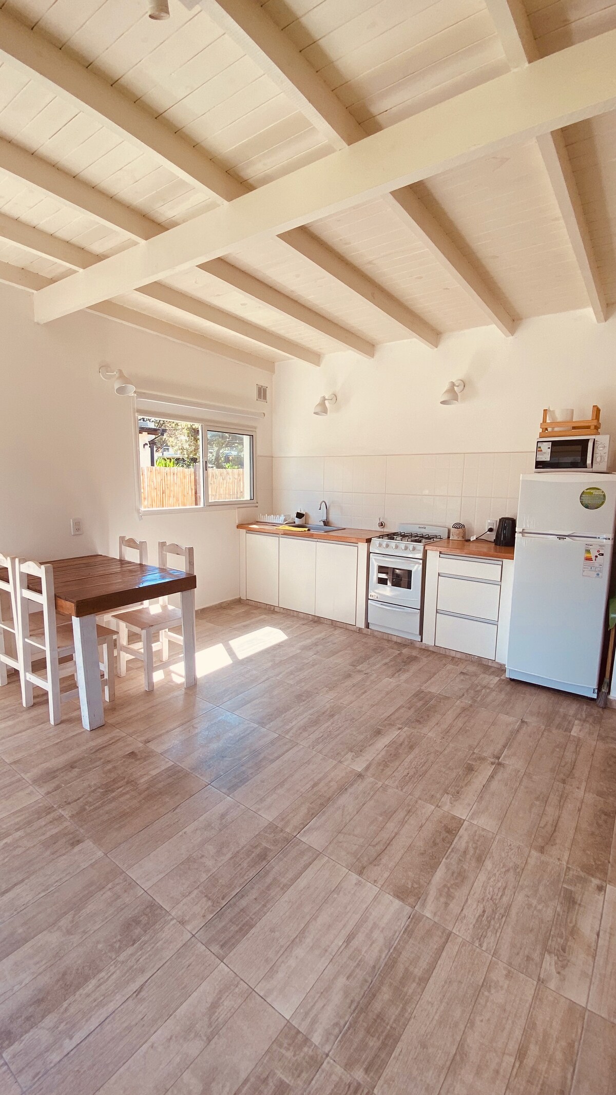 Relajate en este alojamiento único y tranquilo. Entorno natural genuino a metros del mar, bajo cielos infinitos de colores impensados, callecitas de tierra, casas bajas de colores. Un ambiente único, dormitorio con cocina integrada y hermoso baño con jardín. Todo simple como debe ser la vida, valorando el encuentro, la comunicación de calidad en tiempos no apurados. Calefacción para pasarlo bien aún en invierno Incluye desayuno seco Mar, estrellas, música, películas, libros, juegos, amor
