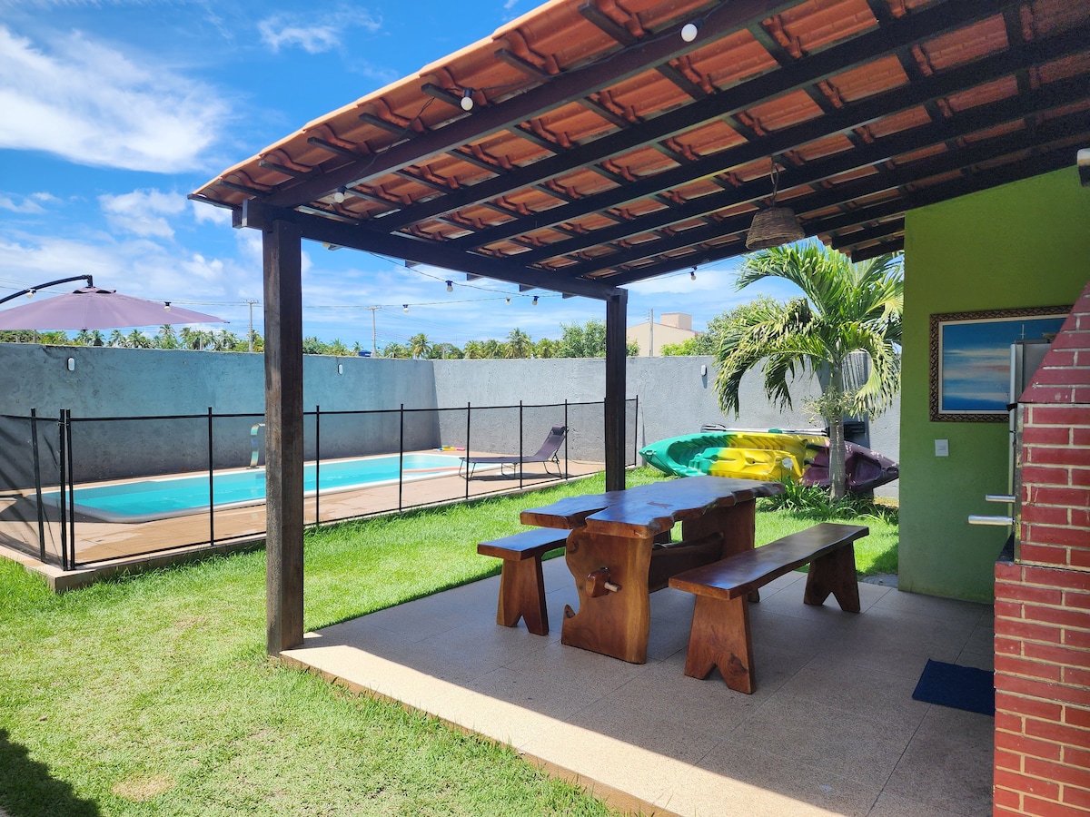 Acogedora casa, con encanto y personalidad playera, con toda la estructura y comodidad para pasar días memorables con su familia y amigos, ubicada en la playa de Peroba en Maragogi, en un condominio a pie de playa, con garita y seguridad, cancha de tenis de playa, campo de fútbol, parque infantil.