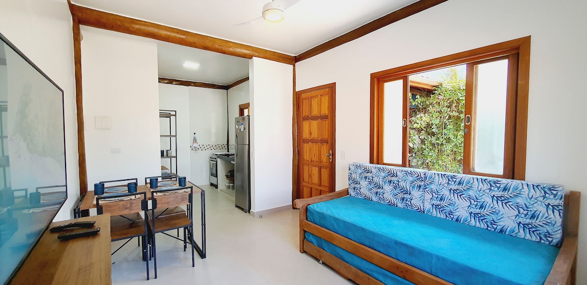 ¡El nuevo emprendimiento en la playa de Maresias! Disfrute de la naturaleza cerca de una reserva de bosque nativo mientras disfruta de las comodidades: bar de piscina húmeda, 2 zonas de barbacoa y horno de pizza. Con internet de alta velocidad. Ambiente familiar, a solo 5 minutos de la playa, con conserjería las 24 horas. 1 espacio para su coche Tu mascota es bienvenida. Sistema de auto-checkin Check-in: a partir de las 15:00 Check-out: hasta las 11:00 Proporcionamos ropa de cama y toallas sin costo