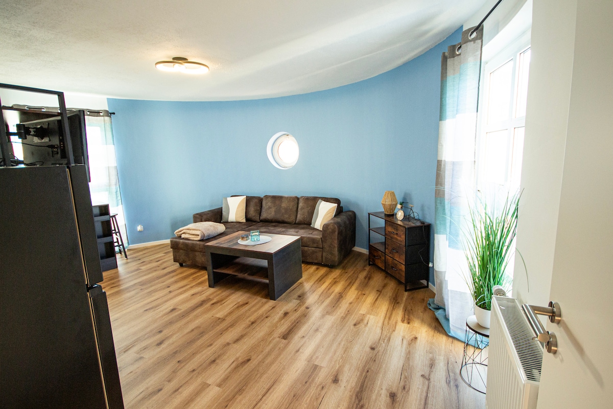 El apartamento modernamente amueblado con una cocina totalmente equipada que incluye una cafetera totalmente automática tiene un estilo sencillo y no desordenado. El balcón te invita a relajarte bajo el sol de la noche. Para que no tengas que perderte la serie más popular fuera de tu casa y disfrutar de Netflix, Disney+ y RTL+ de forma gratuita.