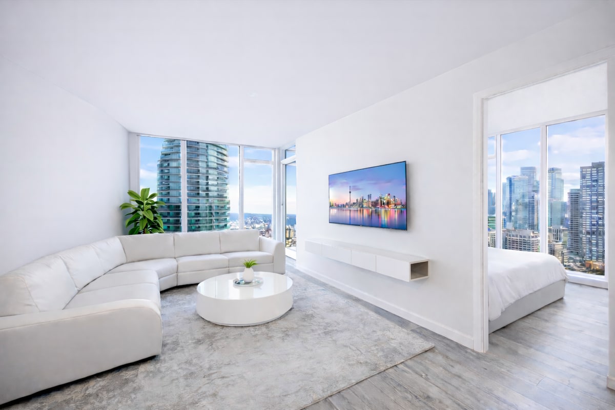 Wake up to stunning lake views and the iconic CN Tower skyline from this elegant 2-bedroom retreat. Steps from the beach, this modern suite features stylish interiors, a fully equipped kitchen, and free parking. Perfect for relaxing getaways or executive stays, enjoy Toronto’s best waterfront living—just minutes from downtown.