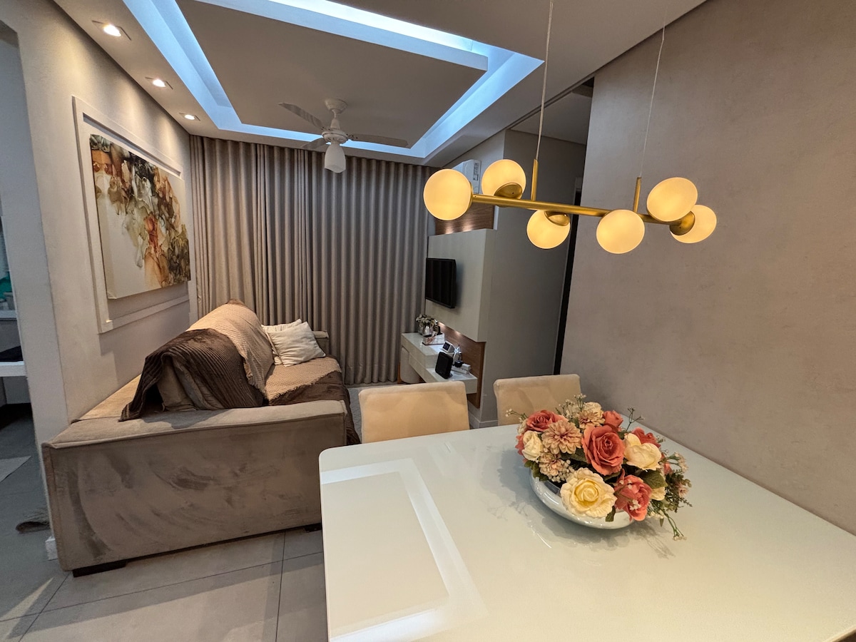 Sofisticação, conforto e ótima localização definem este apartamento de alto padrão, clean e extremamente charmoso, O espaço foi planejado para oferecer uma experiência premium. Os quartos são equipados com ar-condicionado, TV e ventilador, proporcionando conforto e privacidade. Ambientes bem iluminados e decorados com elegância. Para sua comodidade, o apartamento conta com vaga de garagem, além de acesso ao condomínio, que inclui piscina, academia equipada, quadra esportiva e salão de festas.