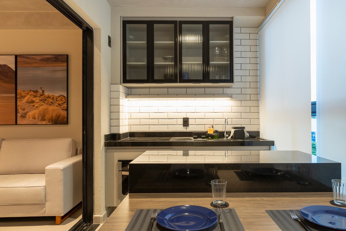Este lugar único tiene su propio estilo. Departamento nuevo, decorado y amueblado con muy buen gusto por tu comodidad en la hermosa ciudad de Marília. Junto al centro de la ciudad y al hospital Santa Casa, con excelentes panaderías y restaurantes locales, el apartamento ofrece comodidad y una hermosa vista desde su décimo piso. Totalmente equipada, una casa lista para que la uses. Habitaciones y entornos con aire acondicionado, camas cómodas, ducha relajante y abundante, televisión digital e internet rápido, cocina planificada.