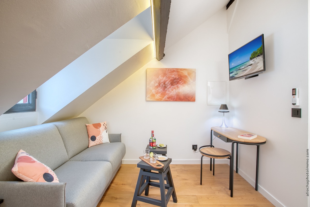 Bienvenido al Jardín Chic, un estudio refinado y moderno ubicado en el edificio Le Botanik, en pleno centro de Fort-de-France. Decorado con gusto en un estilo elegante y minimalista, ofrece una atmósfera cálida y acogedora, ideal para parejas y viajeros de negocios.<br><br>— Estudio moderno y cómodo<br>— En pleno centro de Fort-de-France<br>— A 15 minutos del aeropuerto Aimé Césaire<br>— A 6 minutos de la playa de la Francesa y del Malecón<br>— Sala de reuniones disponible en el edificio<br>