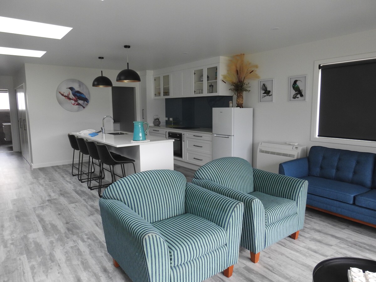 Listen to the waves crashing on the shoreline opposite. Well appointed Two Bedroom, two bathroom apartment with 2 king beds plus a sofa bed in the lounge if required. This is a fully self-contained apartment with open plan full kitchen, living and dinning room with your own balcony. With stunning sea and mountain views and many outdoor activities close by, this is a perfect place to stay in Kaikoura.