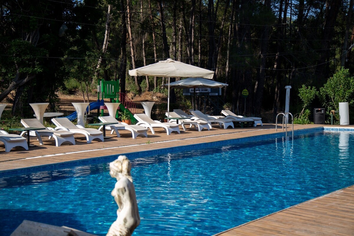 ​Merkeze sadece 4 km. Çam ağaçları arasında bu güvenli villa da kışın doğayla buluşun. Size özel bahçenizde mangal keyfi yapın. 1+1 giriş kat evimizde tüm odalar klimalı Isınma derdi yok. Yatak odasında visko yatak, salonda 2 çekyat ile konforunuz hazır. Çelik kapı ile güvenliğiniz sağlandı. Mutfak gereçleri ve elektronikler eksiksizdir. Sessiz, güvenli ve çocuklar için ideal bahçeli bu evde, kış tatilinizin huzuru sizi bekliyor. Avantajlı haftalık fiyatlar için hemen rezervasyon yapın.