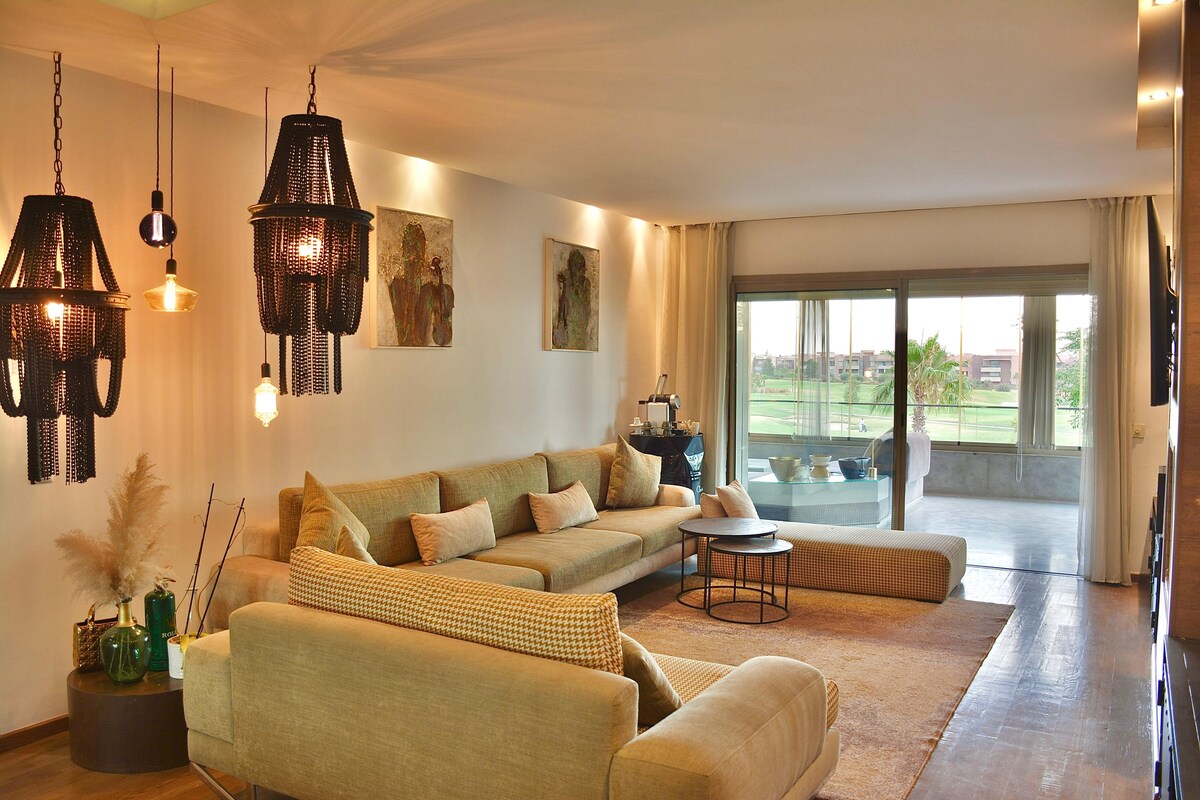 🌴 Elegante apartamento de 2 habitaciones – Vista al campo de golf, piscina y solárium 📍 Ubicado en la prestigiosa residencia Prestigia 🔑 Entrada autónoma las 24 horas 🚗 Estacionamiento privado seguro incluido 🌅 Gran terraza solárium sin vecinos de frente con vista despejada 📶 Wi-Fi de fibra de alta velocidad y aire acondicionado reversible 🧼 Ropa de cama de calidad y limpieza impecable 🚉 Estación y ✈️ aeropuerto a solo 5 minutos 🕌 La plaza Jemaa el-Fna a solo 10 minutos 💫 La ubicación perfecta para combinar comodidad, tranquilidad y descubrimiento de la ciudad roja