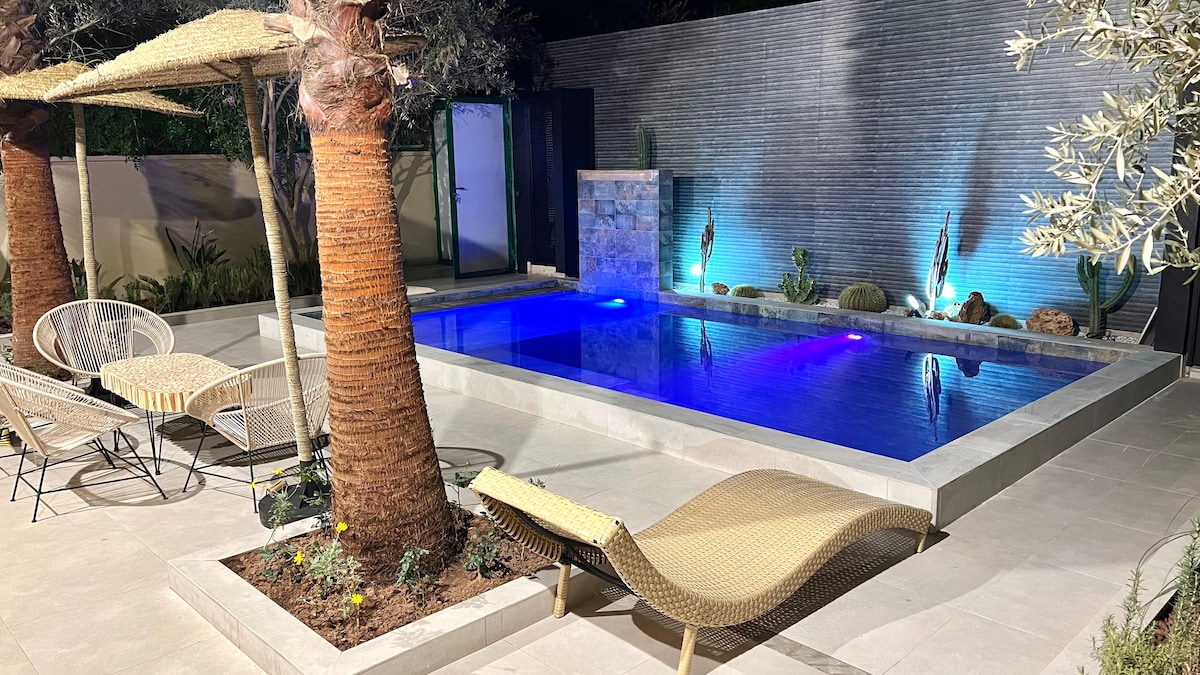 ✨ Private villa just 15 minutes from Marrakech, perfect for families and groups. Enjoy a completely private pool, Moroccan hammam, gym, high-speed Wi-Fi, and optional breakfast. The quiet, unobstructed garden, the warm welcome and 24-hour security guarantee a peaceful, comfortable and authentic stay. An ideal experience to relax while remaining close to Marrakech.