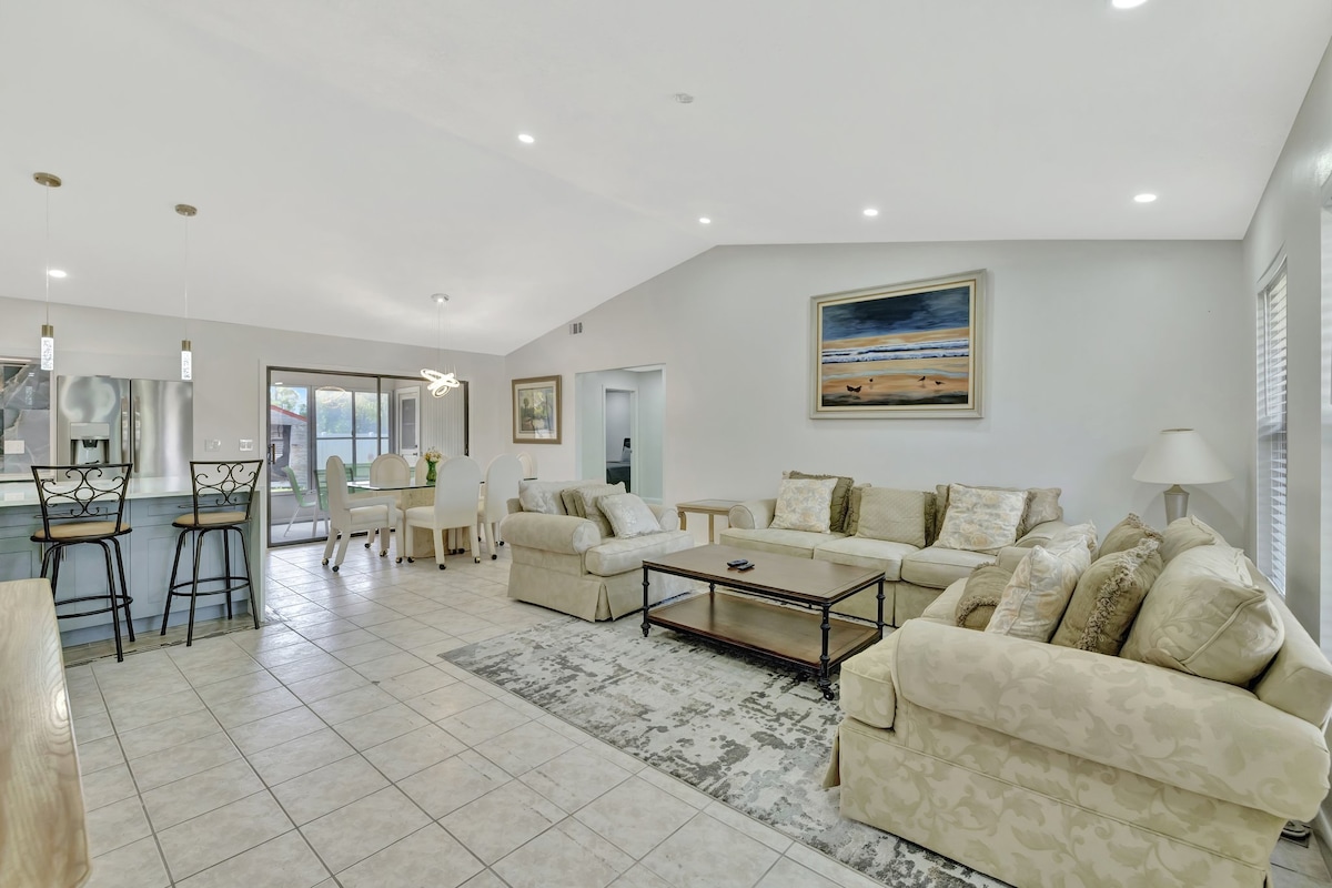 Fabuloso alojamiento de 2 dormitorios con piscina privada de agua salada. Ya sea que viajes a Stuart por trabajo o por placer, te encantará el ambiente relajado de este alojamiento. Grandes espacios al aire libre para disfrutar del hermoso clima con una zona de patio delantero vallado privado y área de piscina y patio trasero. Estamos ubicados en el centro, a 10 minutos en auto de la playa y el centro de la ciudad. Estamos a pocos pasos de restaurantes, vida nocturna, tiendas de comestibles, centro médico, farmacia y otras tiendas.