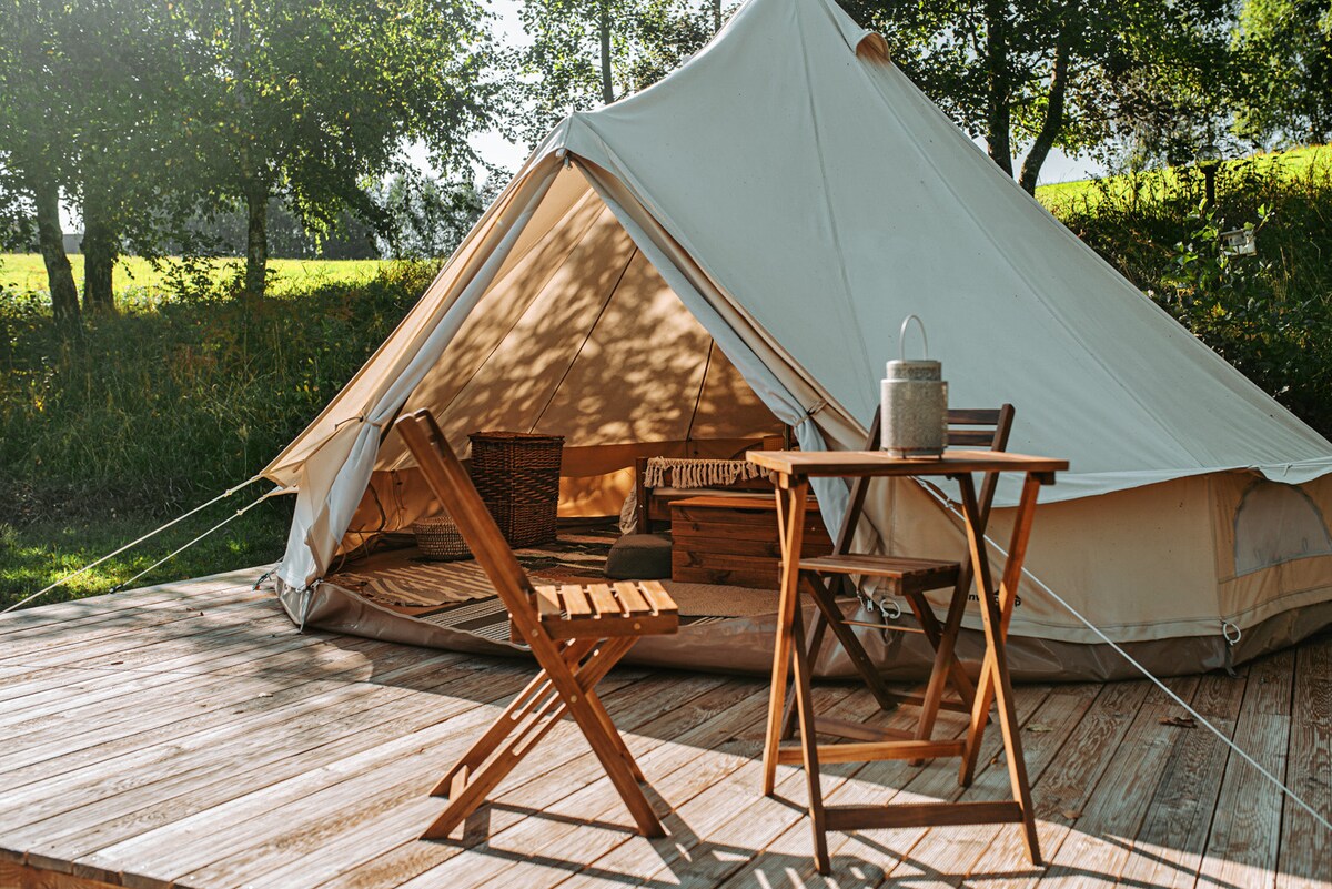 Te invitamos a nuestro camping de lujo, o GLAMPING. Es algo para los amantes de la naturaleza y, al mismo tiempo, para las personas que disfrutan de la comodidad. La tienda tiene 3 m de altura y 25 m2 de superficie. En el contenedor sanitario situado junto a la tienda, los huéspedes tienen su propio baño privado con llave. Dentro de la tienda también habrá una mini cocina para poder preparar comidas básicas. En la gran terraza hay muebles de jardín, tumbonas y una parrilla. Si quieres despertarte con vistas al lago, ¡te invitamos a visitarnos!