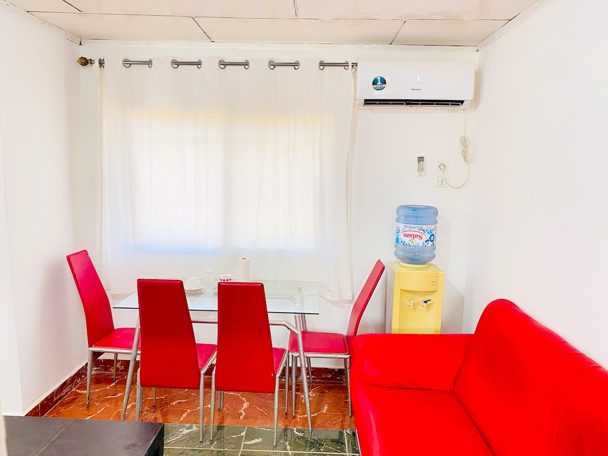 Departamento de 1 dormitorio con sala de estar ubicado en Gbessia Conakry, a 10 minutos en auto del aeropuerto internacional, a 20 minutos en auto de la embajada de EE. UU. y a 25 minutos del centro de la ciudad KALOUM. vas a tener todo el departamento para vos. cerca de varios restaurantes y muy fácil acceso. La seguridad está garantizada las 24 horas, los 7 días de la semana, la limpieza será 2 veces a la semana. Lavadora, estacionamiento gratuito, electricidad incluida en el precio. El departamento está ubicado en el tercer piso. Sin ascensor