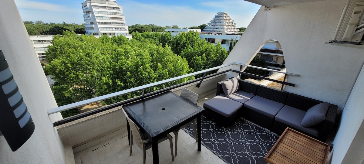 Joli studio cabine, entièrement rénové, situé au premier étage d'une résidence calme avec ascenseur et parking privé au pied du bâtiment. Proche plage, parc expo, Arena, aéroport, tramway vers Montpellier... Possibilité de 4 couchages : un canapé lit (rapido) tout neuf pour un grand confort et un lit superposé. Idéal pour une petite famille. Idéalement situé, proche des plages et de toutes commodités. Tout peut se faire à pied !