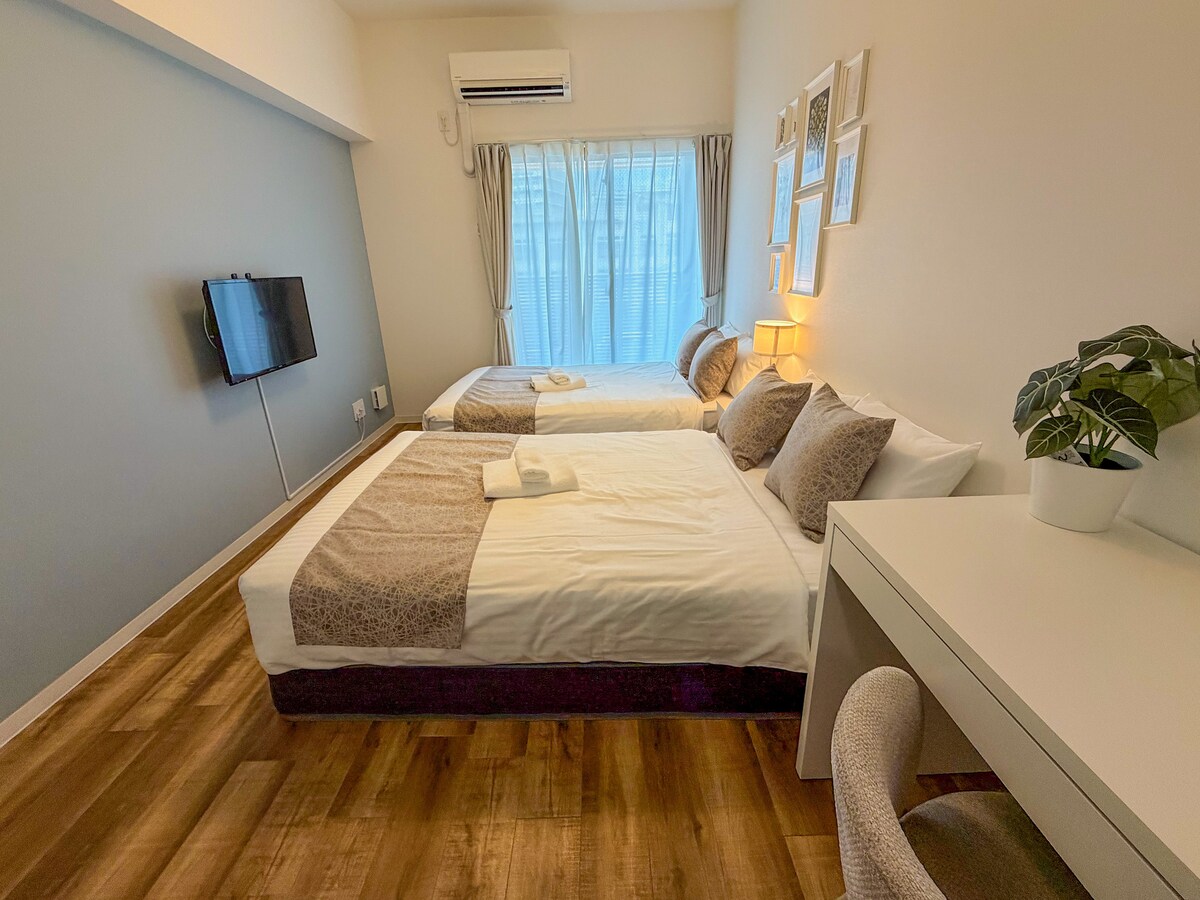 Apartamento de 40 metros cuadrados y 2 plantas y 2 dormitorios ubicado a 2 minutos a pie del Museo de Béisbol. A 5 minutos a pie de la estación de Hiroshima. Cada dormitorio viene con 1 cama tamaño queen con capacidad para 4 personas en total. Está ubicado en el primer piso con vistas desde el balcón. Toda la ropa de cama es un estándar de calidad del hotel. TV para tu entretenimiento. Baño separado y área de polvo. Lavadora. Lugar ideal para hospedarte en Hiroshima. Nota: La limpieza se realiza una sola vez después de la salida.