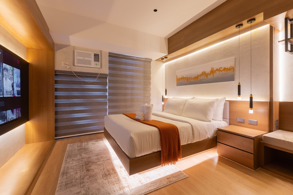 Experience a luxurious stay in this hotel-style studio in the Fort — where modern elegance meets home comfort. Rest on a queen-size Senso Memory Foam bed. Unwind with a 75-inch Smart TV and Netflix. Cook in a fully equipped kitchen, or relax in the Italian-style shower. Just a 5-minute walk to Venice Grand Canal Mall and minutes from BGC — perfect for staycations, business trips, or weekend escapes. Add my Listing to your Favorites.