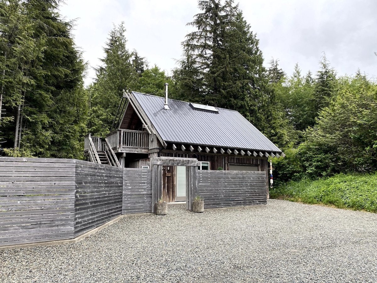 Nueva* Hermosa cabaña personalizada en la costa oeste ubicada en la selva tropical. A poca distancia a pie de Cox Bay y Chesterman Beach. Cocina de concepto abierto y sala de estar con techos altos, mucha luz natural e impresionantes vistas a la selva tropical desde cada ventana. Dormitorio principal con cama tamaño king y baño privado con relajante ducha de efecto lluvia. Acogedores rincones de lectura con una maravillosa selección de autores locales y guías de campo. Una escapada verdaderamente única a Tofino, estamos deseando compartir este lugar tan especial contigo.