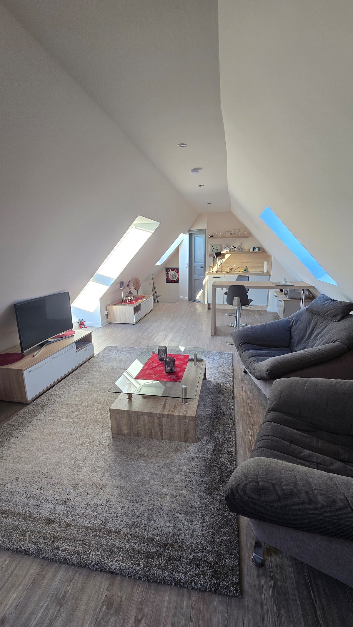 El apartamento abierto y luminoso en el ático es un refugio perfecto para tu estancia en Rostock. La ubicación en el borde de la zona residencial de Rostock-Kassebohm es también un buen punto de partida para explorar la ciudad o sus alrededores en bicicleta o en transporte público. Las tiendas y la parada de autobús se encuentran a poca distancia a pie, a unos 5 minutos. El apartamento es perfecto para aquellos que solo quieren pasar unos días o incluso unas semanas en la ciudad.