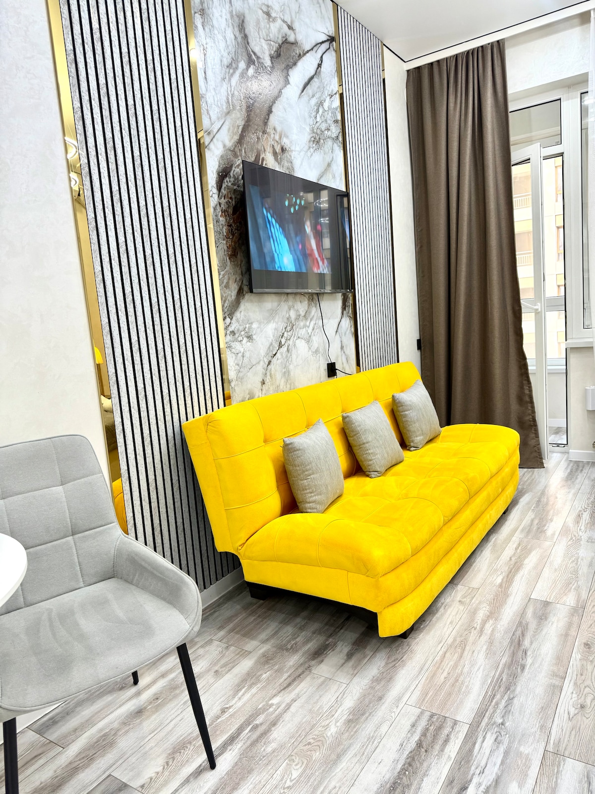 Moderno y acogedor estudio en la ciudad de Almaty. El alojamiento entero recientemente renovado tiene todo lo necesario para tu cómoda estancia. El apartamento tiene cocina totalmente equipada, wifi de alta velocidad y todas las comodidades necesarias. El estudio está ubicado junto al gran centro comercial con una variedad de restaurantes, cafeterías, con supermercado y cambio de divisas de seguridad. La parada de autobús está a 1 minuto a pie. La calle principal City Walking está a 10 minutos a pie y el aeropuerto internacional está a 30 minutos en coche.