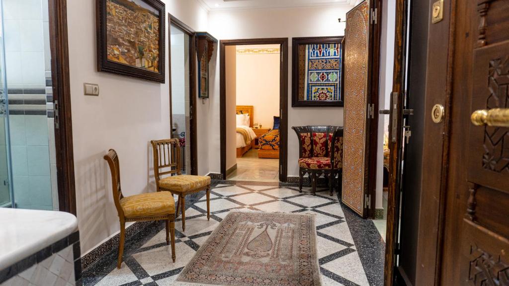Vivez une expérience unique au cœur de la médina de Fès dans notre maison d’hôte pleine de charme. Nos suites spacieuses, décorées dans un style traditionnel élégant, allient confort et authenticité pour un séjour inoubliable. Profitez d’une magnifique terrasse offrant une vue imprenable sur l’ancienne médina, idéale pour se détendre, partager des moments en famille ou admirer les couchers de soleil.