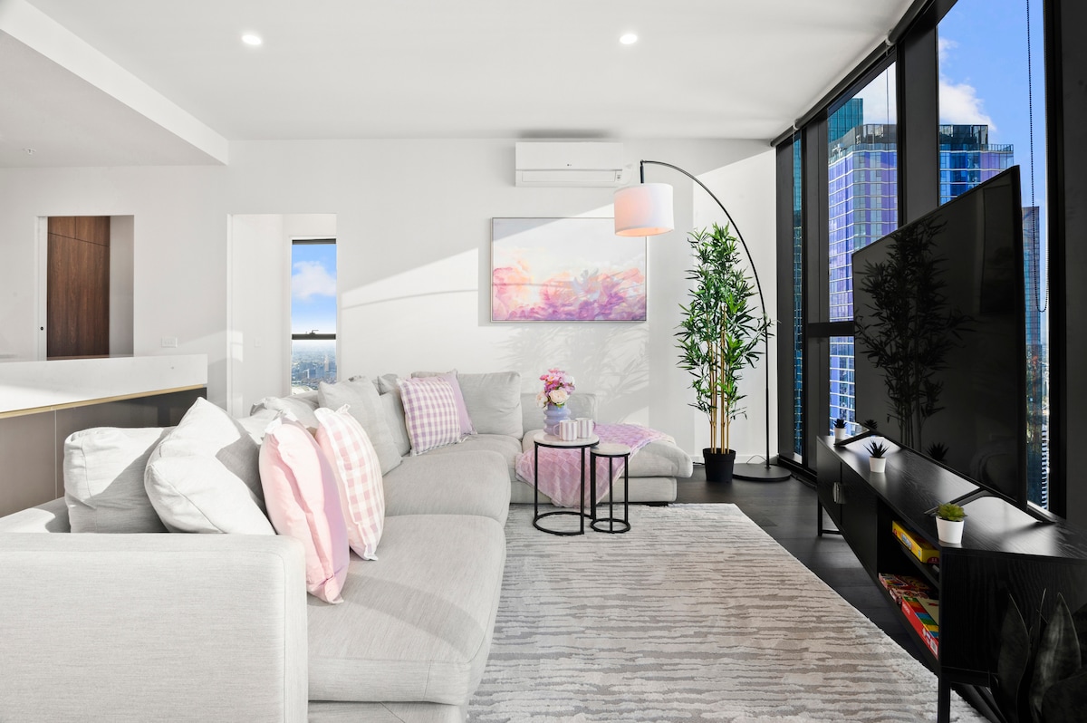 Welcome to our stunning, newly decorated apt on the level 57, offering breathtaking views and an abundance of natural light. Unwind in this tranquil, chic space. Conveniently placed in a free tram zone, tram station is right at your doorstep. Melbourne's iconic QV Market is just a stone's throw away. RMIT is a short 5minute walk, and Melbourne University is a mere 10minute stroll. This prime location is surrounded by Melbourne's finest specialty cafes & restaurants. An ideal urban oasis awaits!🤩